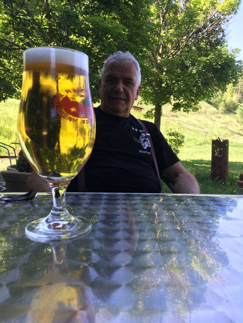 Treffpunkt 7.00Uhr große Tanne / Unterstmatt, alle waren pünktlich und ab ging die Luzie über die Schwarzwaldhochstraße(B500) gen Süden. Über den Kniebis, Wolfach, Triberg und Furtwangen erreichten wir gegen 9.45Uhr den Schluchsee wo wir erst mal frühstückten. Nach der Stärkung rollten wir bergab Richtung Bad Zurzach wo wir dann die Schweiz erreichten. Über die Landstraßen vorbei an Luzern erreichten wir den Glaubenbergpass dann weiter den Lungerer See und den Brünigpass. Es war eine zähe Fahrt wobei die Hitze das größte Problem darstellte. Aber es half nichts wir mussten weiter und der erste hohe Pass lag vor uns, der Grimselpass, da war es dann auch gleich erträglicher. Vor allem das überwältigende Panorama entschädigte für die Strapazen der letzten Stunden. Von jetzt ab fuhren wir nur noch bergab bis nach Gluringen zum Hotel Walliser Sonne wo wir uns das verdiente Feierabend-Bier gönnten.