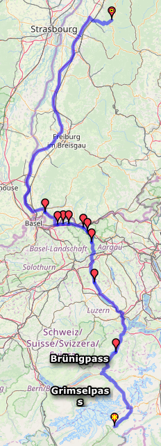 Die Heimreise war angesagt und aufgrund der Wettervorhersage von knapp 40 Grad entschieden wir uns auf direkten Weg in die Heimat zurück zu fahren. Die Fahrt gestaltete sich zäh, viel Verkehr über den Grimsel und Brünigpass und die Temperaturen stiegen rasch an. Vorbei an Luzern und Aarau erreichten wir irgendwann Rheinfelden wo wir uns schnellstens auf die Autobahn begaben um nach Hause zu kommen. Am Ende des Tages standen wieder knapp 400km auf dem Tacho und wir hatten ca. 6 Std reine Fahrtzeit (bei den Temperaturen aber kein Zuckerschlecken).